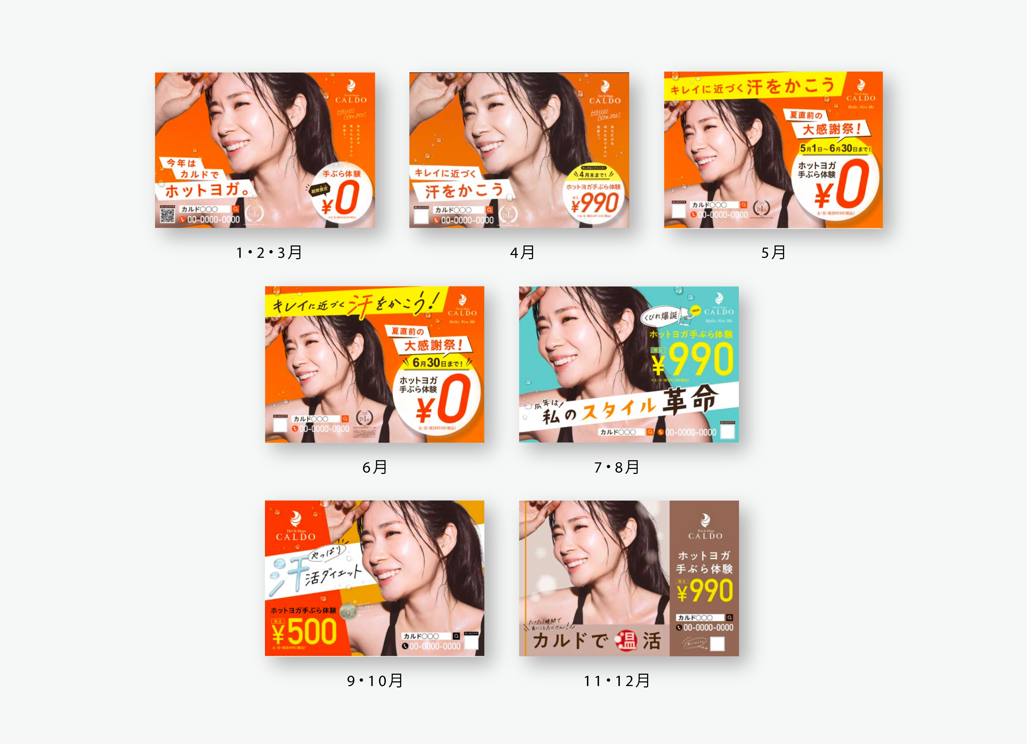 各店舗によってサイズやレイアウトが変わるため、どの広告でもメインイメージが崩れないよう見せ方を工夫しています。