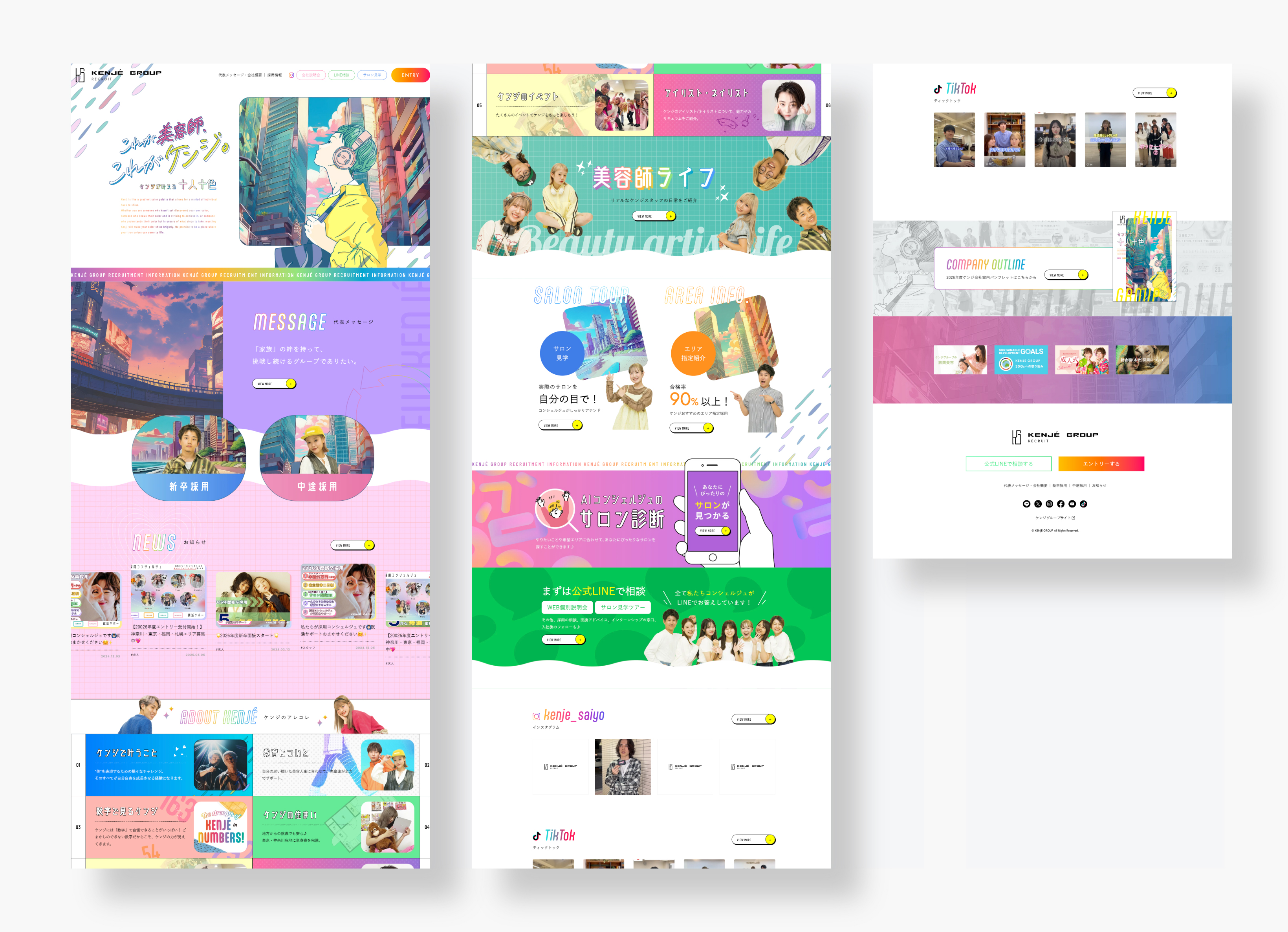 デザイン全体にはシティポップ風のトレンドを取り入れたポップで可愛らしい雰囲気に。色が喧嘩しないように白を挟んだり、コンテンツの見せ方や動きにもこだわっています。