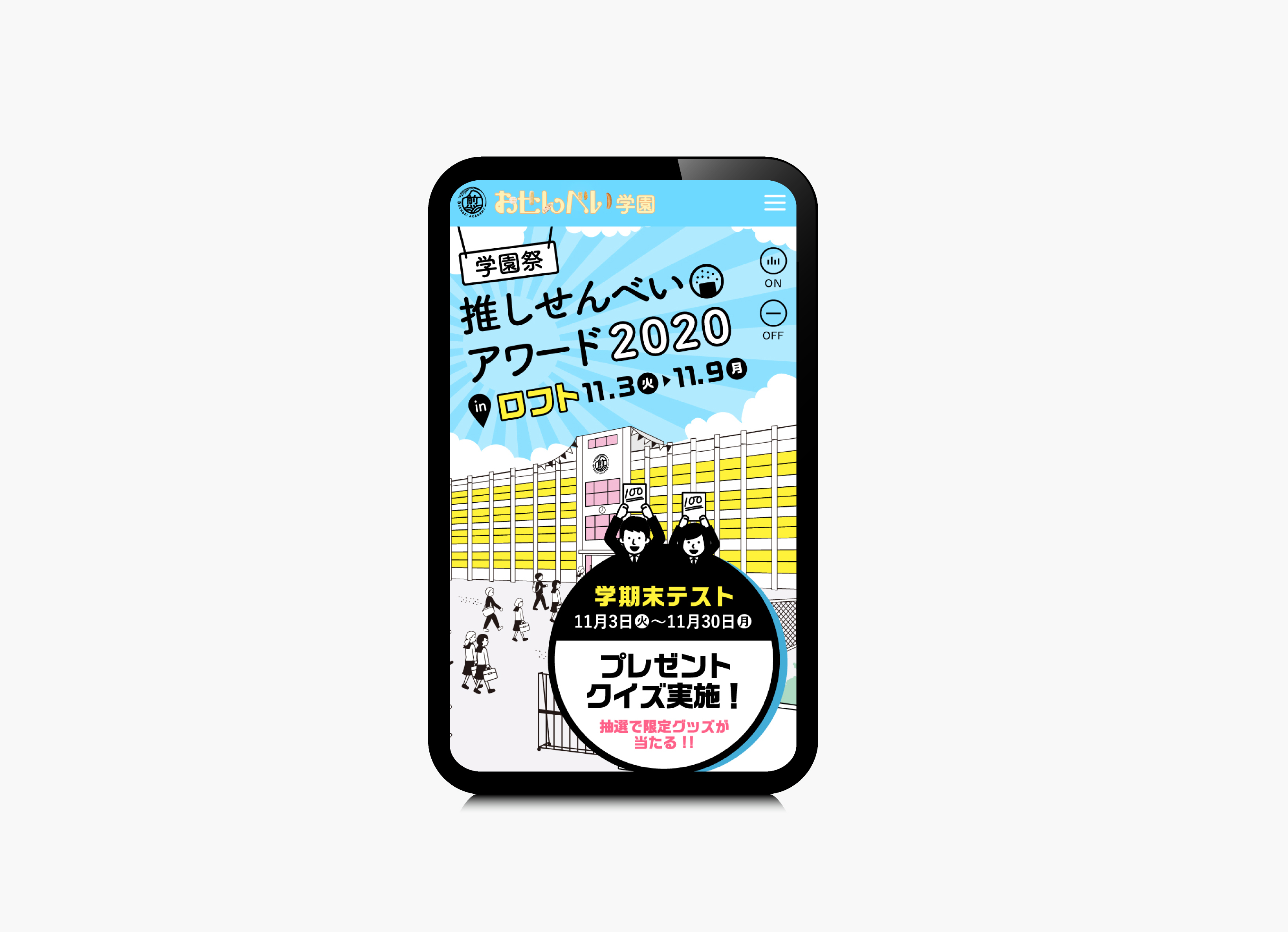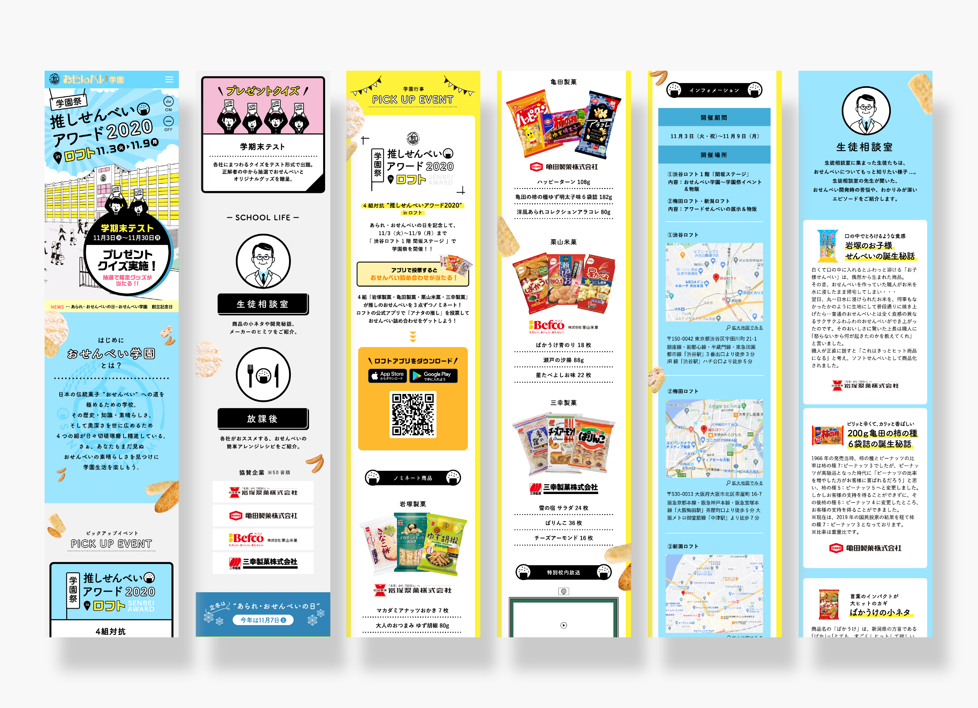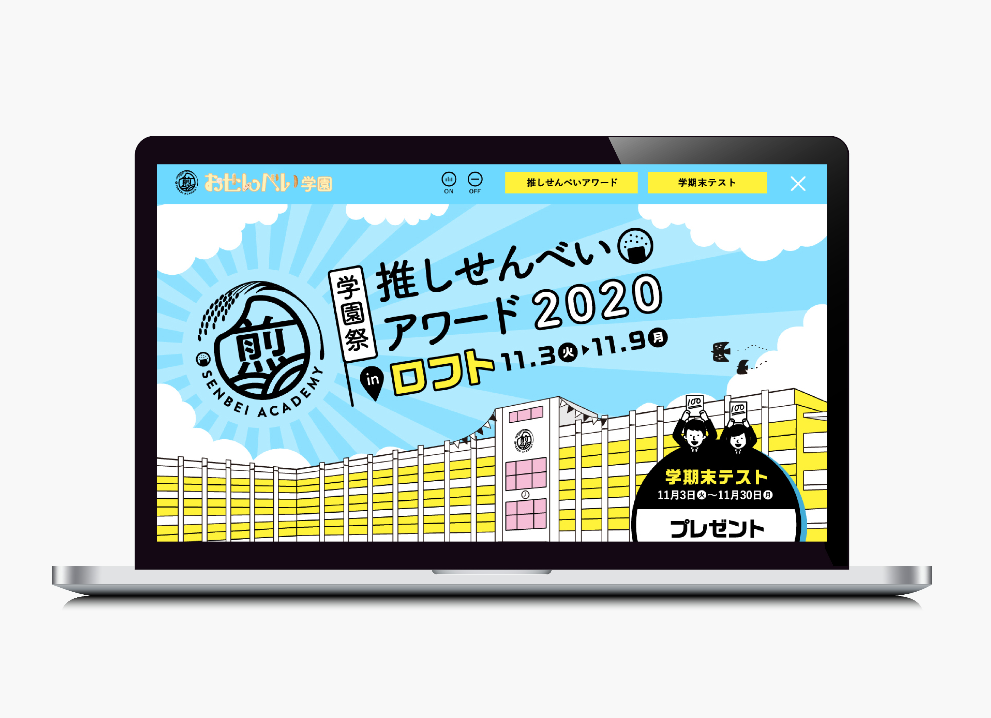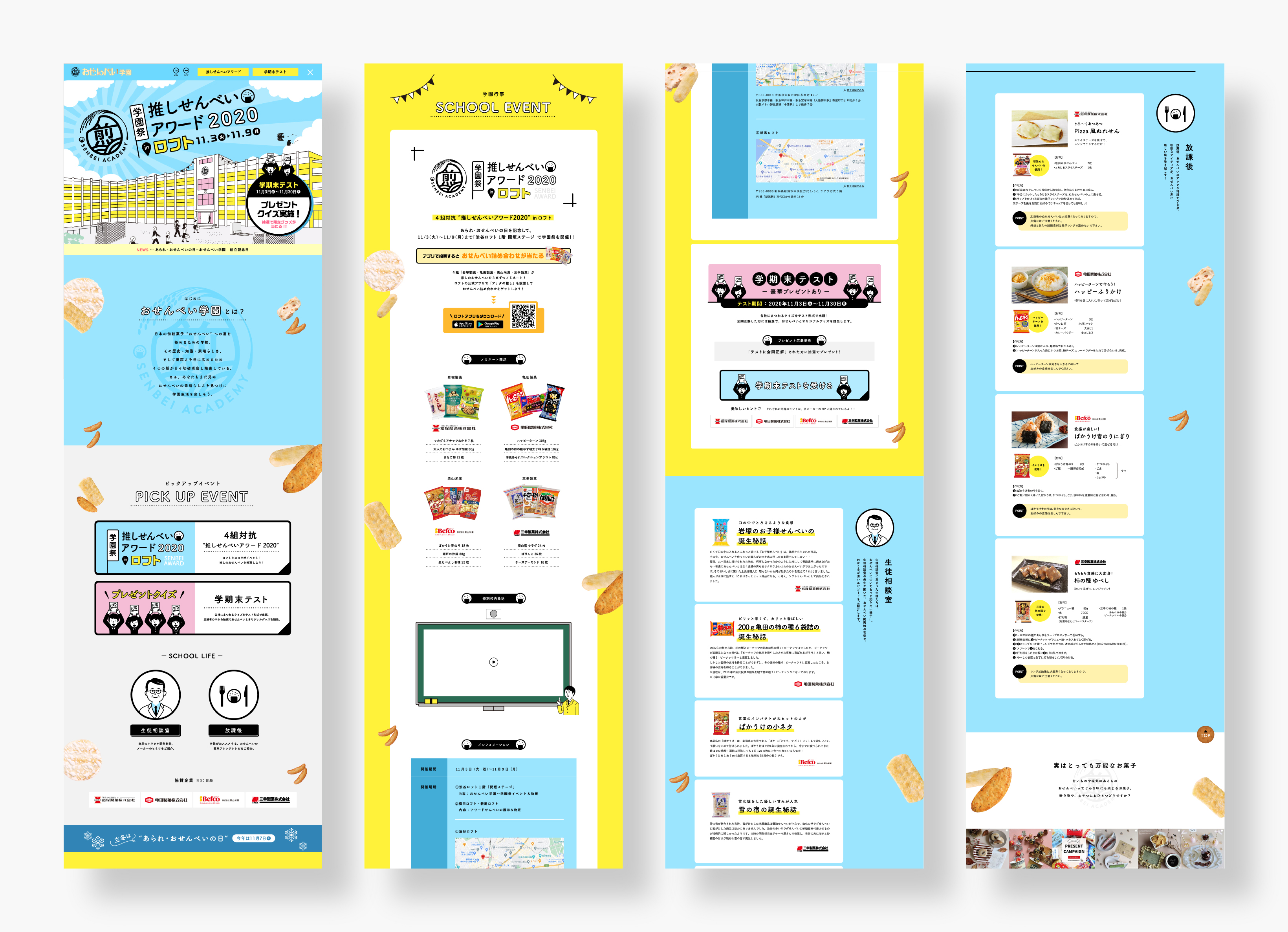 「おせんべい学園」の企画に合わせて、学校をテーマにデザインしました。