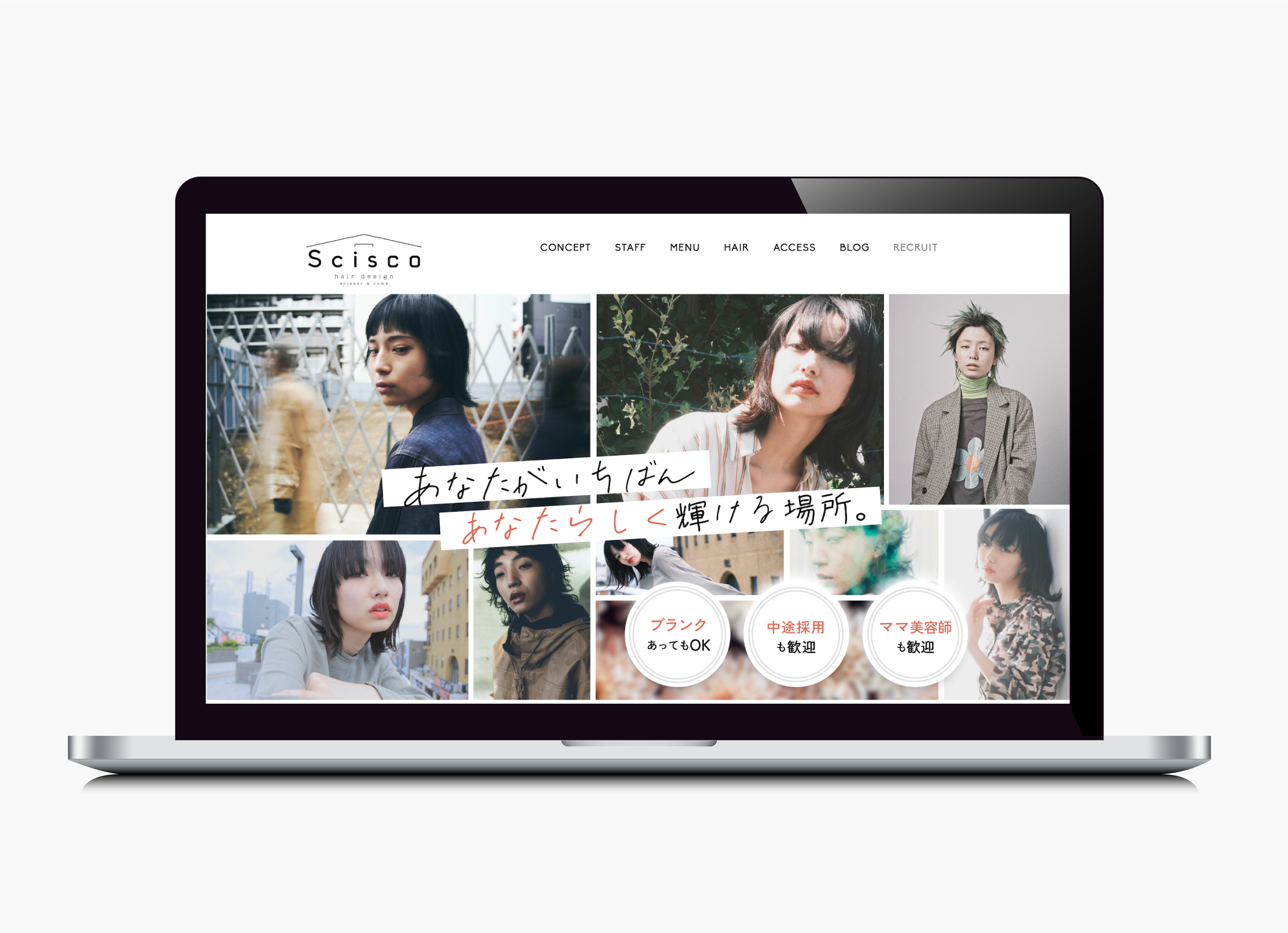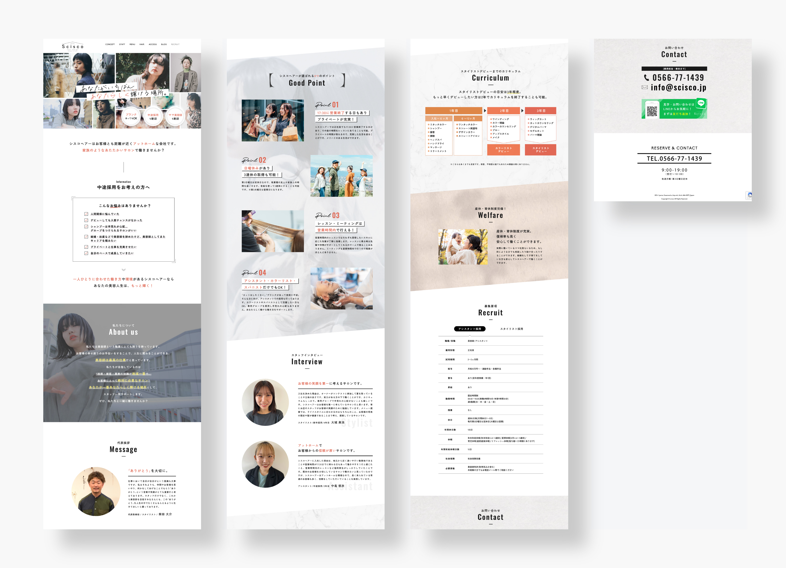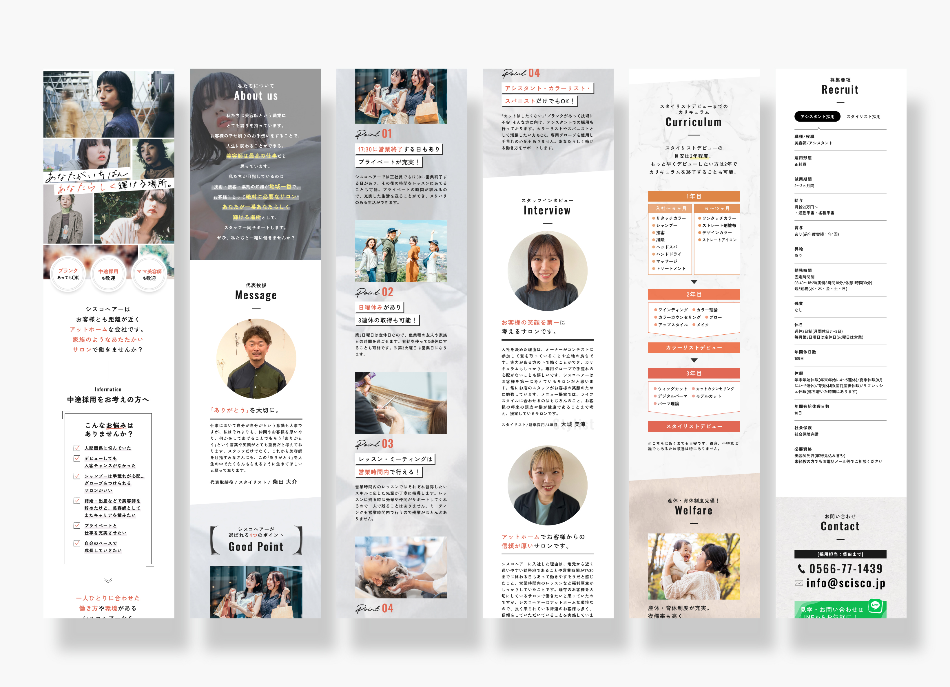 https://www.scisco.jp/recruitment/モード感のあるスタイル写真が映えるようなフォント・色選びを心がけ、シンプルでスタイリッシュな中にも少しだけ遊び心をプラスしたデザインに仕上げました。